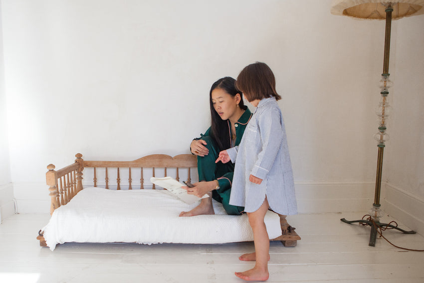 The daughter of an architect, Zoe was taken straight from the hospital as a newborn baby to a potential site. Similarly, POPLIN visited the day before structural works began in Hampstead, as family life hummed alongside the nervy expectation of imminent and dramatic changes. Zoe's excitement about creating a beautiful physical space in which to raise her children balanced by her considered attitude to fortifying her family's emotional foundations.